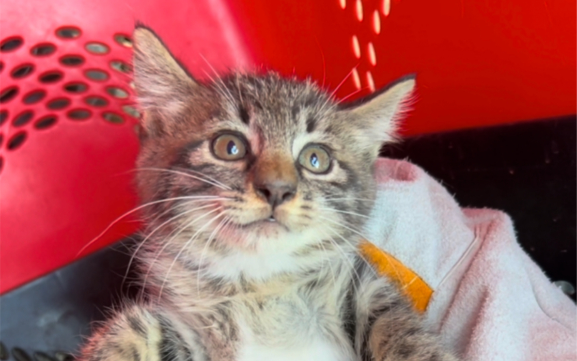 وُلدت مجموعة من القطط الصغيرة في المطر الغزير، وكان أحدهم واقفًا ورقبته