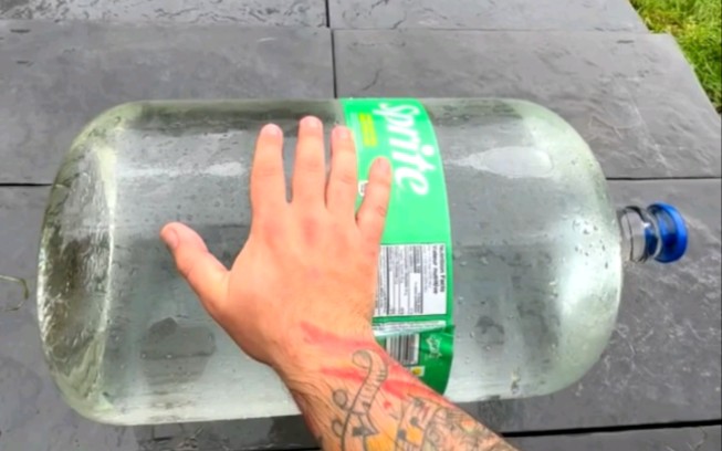 لحظة فك الضغط المثيرة لانزلاق الزجاجة على الدرج