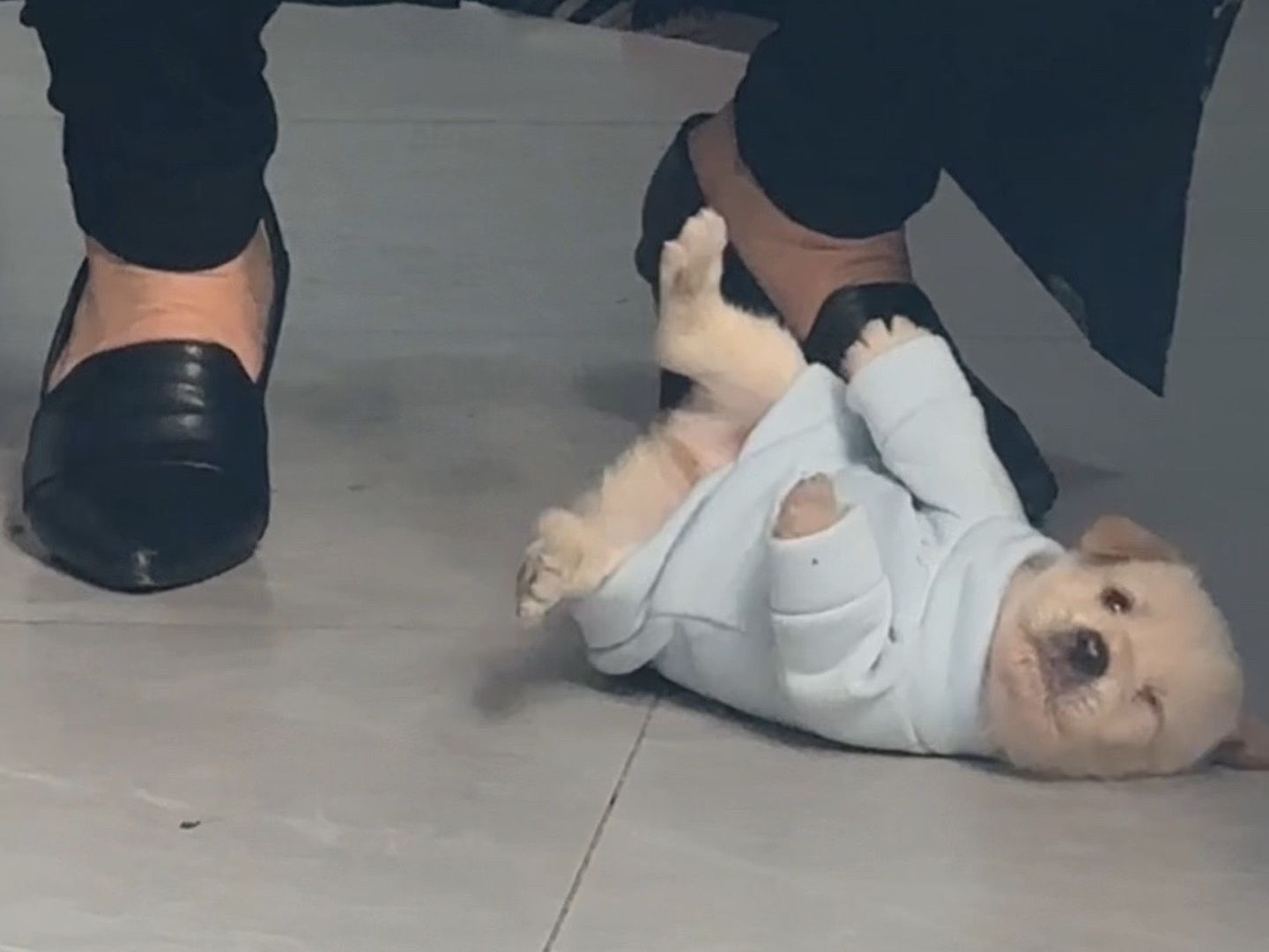 أعرف، أعرف، سأحتضنه على الفور، الكلب الصغير الهجين يبكي مثل الوحش!