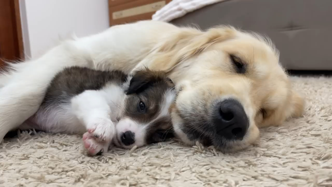 [يوميات القطط والكلاب] التقى المسترد الذهبي الصغير بأخيه الذي كان حجمه أكبر بعشر مرات لأول مرة!