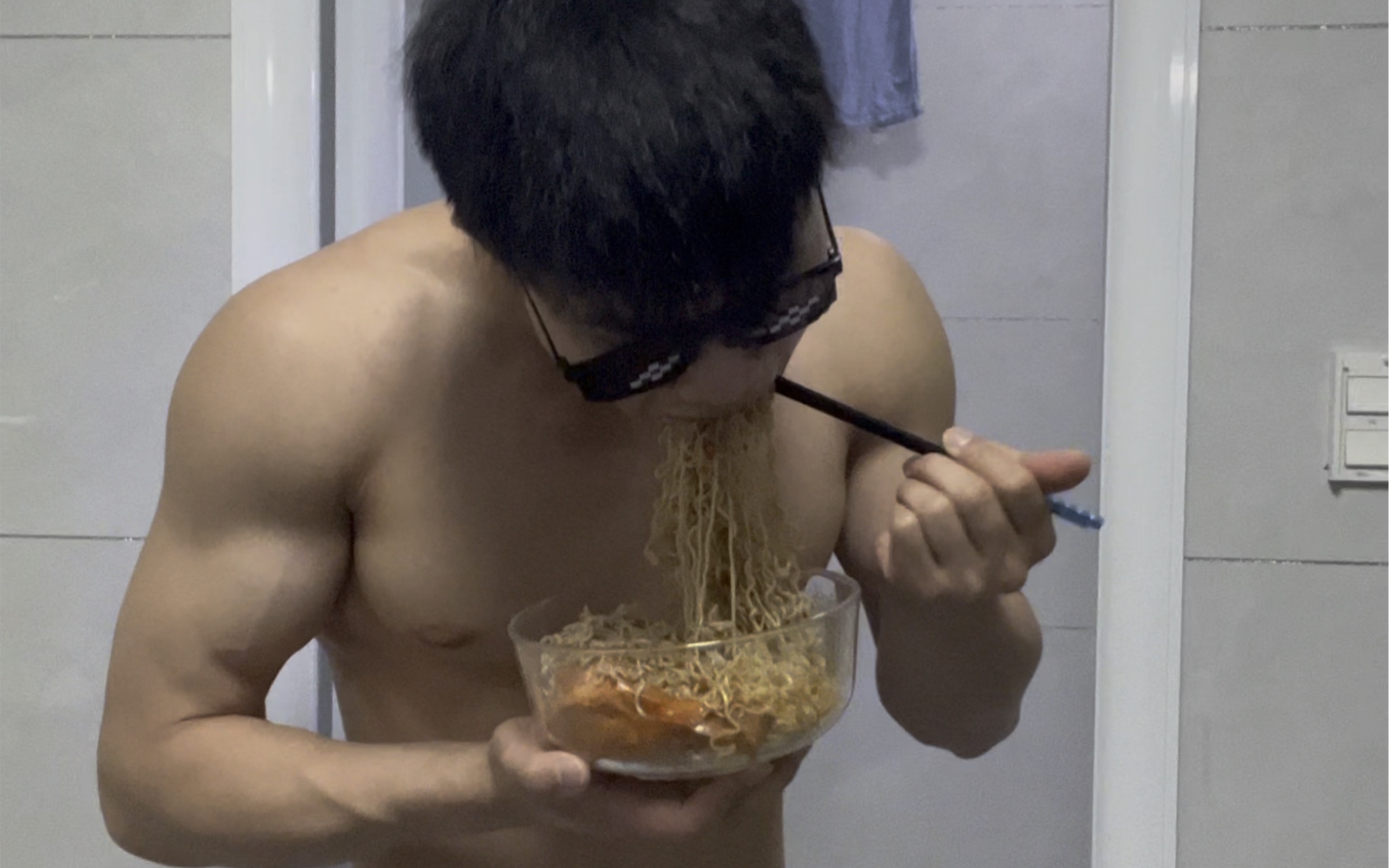 ترتدي الكثير من الملابس، هناك شيء يشغل بالك. سمعت أن هناك من يريد مشاهدة فتاة ذات عضلات تفعل وضعية ا