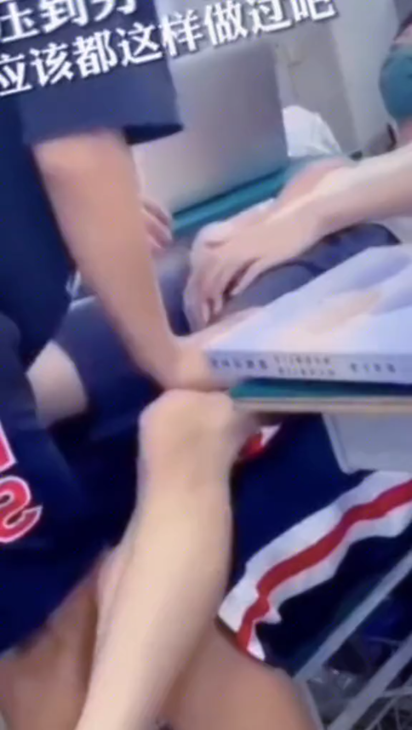 "بث مباشر: طالب الرياضة يتعرض للدغدغة في باطن قدمه من قبل زميله في السكن الطلابي الذكور..."