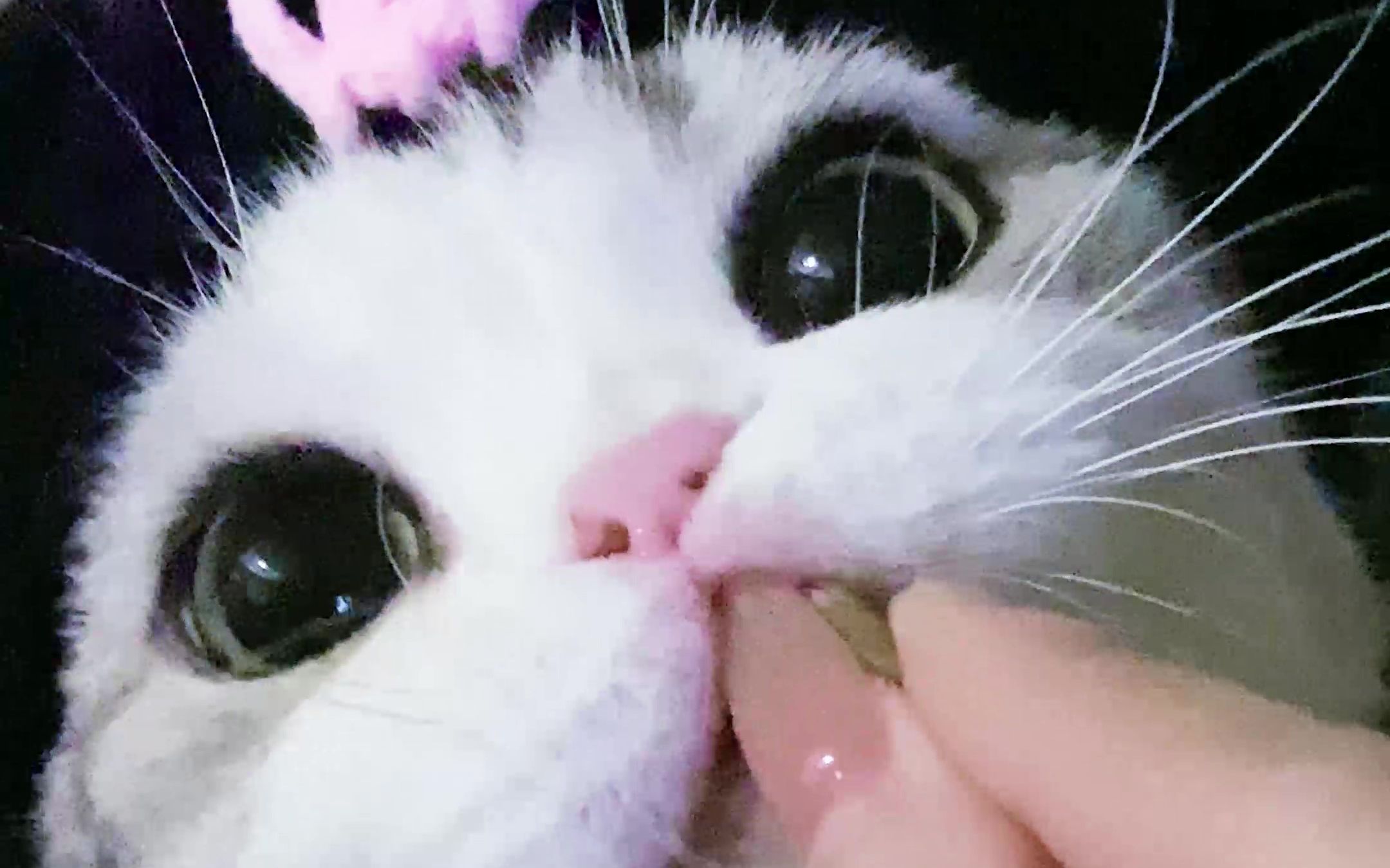 القطة تبدو حائرة أثناء أخذ الدواء، وكأنها لا تعرف ذيلها بعد الآن