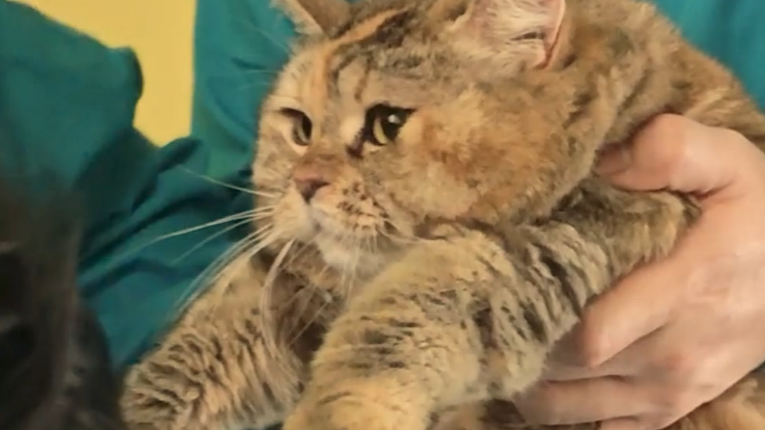 قطة الموز تشعر بعدم الراحة في بطنها فتذهب إلى الطبيب.