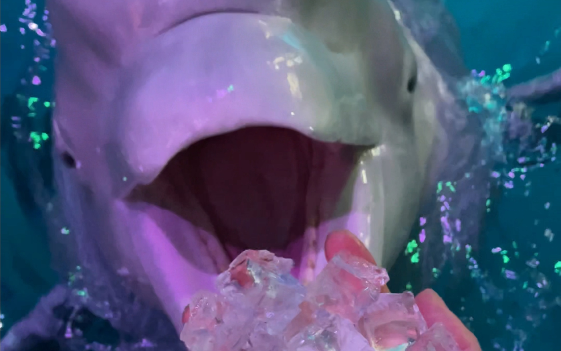الحوت الأبيض يأكل مكعبات الثلج لتعويض المياه العذبة، وليس لتبريده.