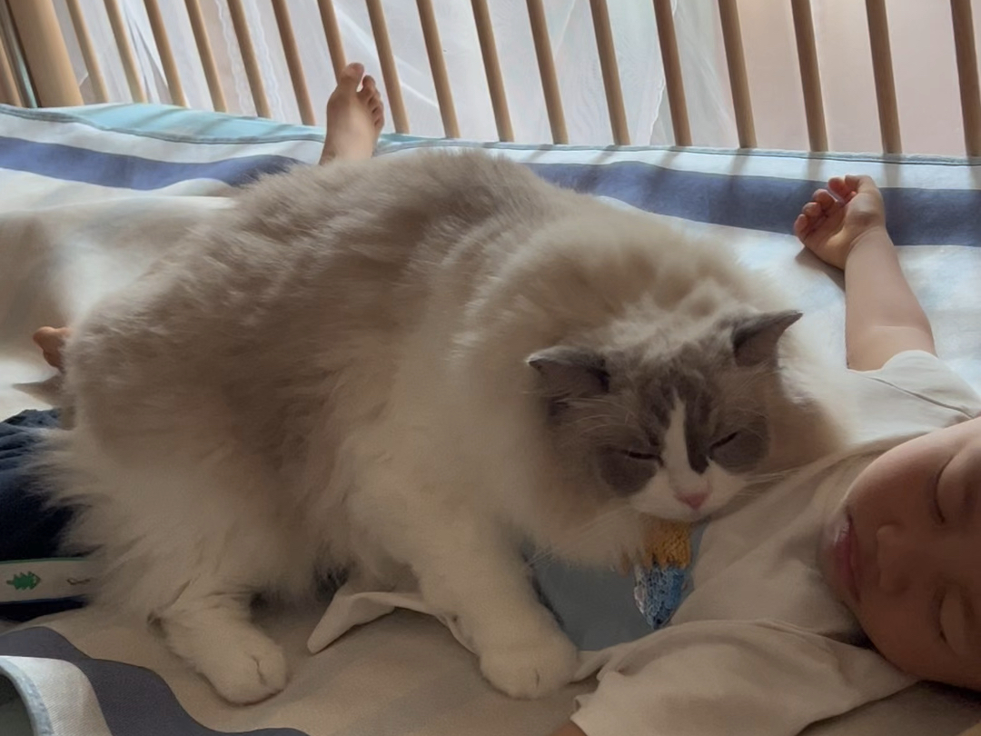 قبل ثلاث سنوات، رافقت القطة الطفل للنوم. بعد ثلاث سنوات، لا يستطيع الطفل العيش بدونها~ #قط_وطفل# من