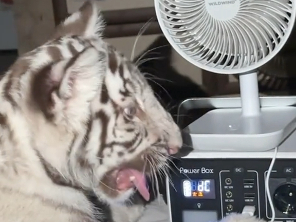 النمر الأبيض الصغير يستخدم فضلات القطط لأول مرة
