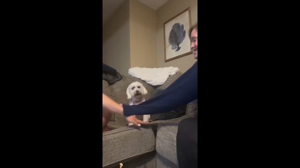 عندما تضع يدك أمام الجرو... رد فعله لطيف جدًا
