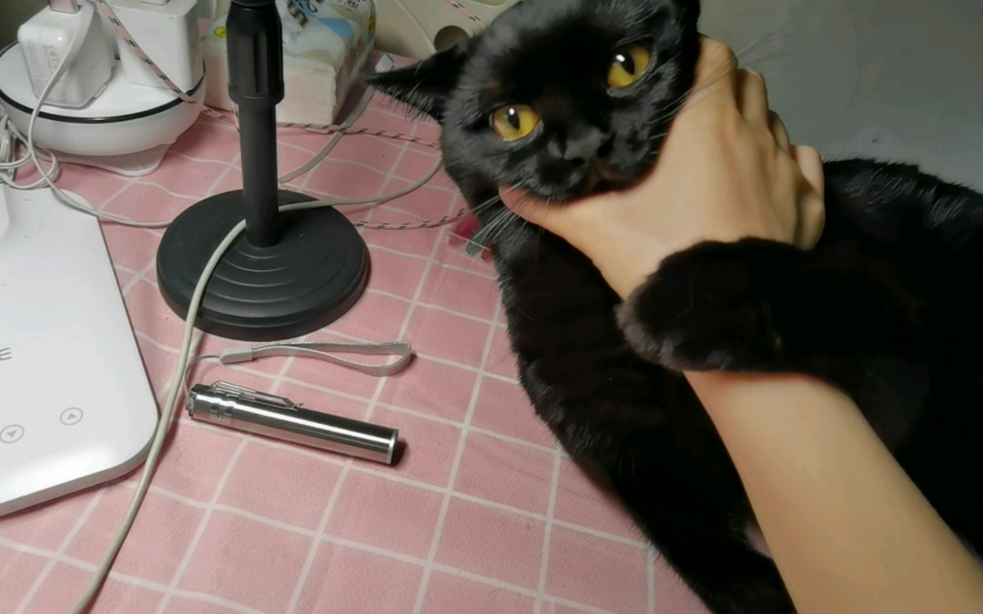 الأم القطة تحمي صغيرها من الرجل الذي دخل المنزل