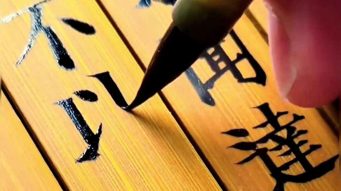 الكتابة عن ظهر قلب لنص "مقدمة مجمع لانتينغ" على أرضية إسمنتية