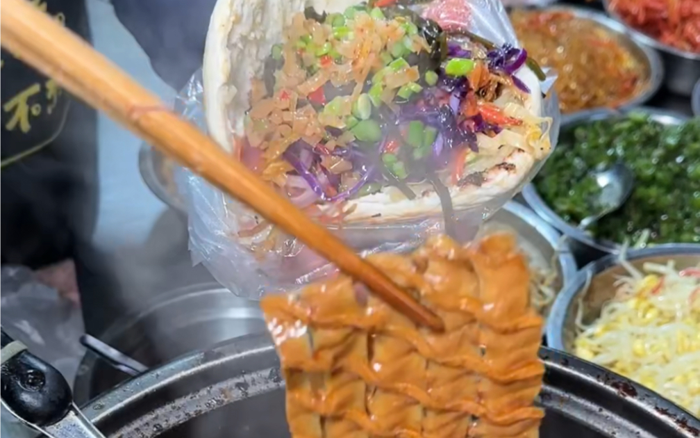 حساء ساخن ونودلز باردة في شوارع الشمال الشرقي، مع صلصة السمسم بالسكر الأبيض، لذيذة جدًا!!