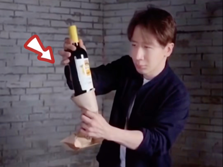 تحول الأسطوانة إلى نبيذ أحمر، فبُهِتَتِ الجميلةُ من شدةِ الاندهاش.