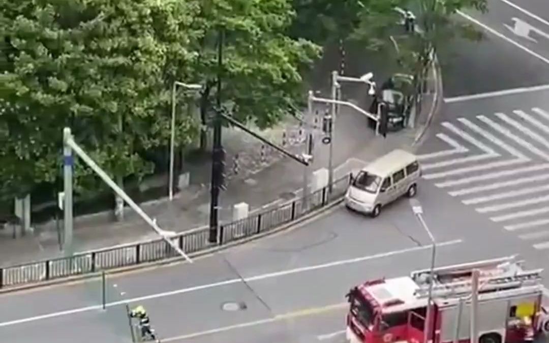 سيارة متوقفة على جانب الطريق اعترضت الطريق، ومرّت سيارة الإطفاء من خلالها.