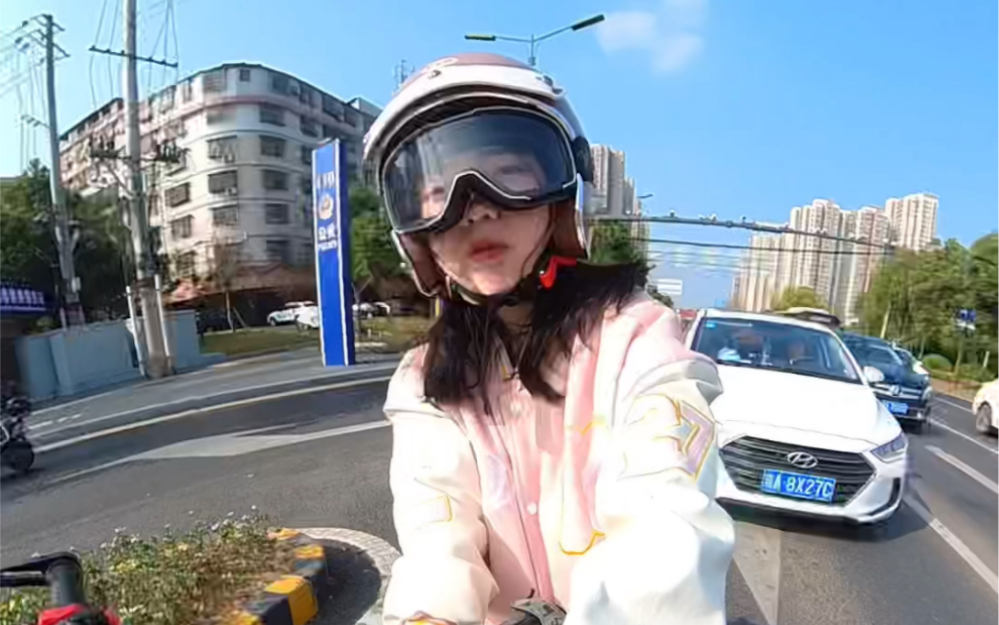 مواجهة فتاة دراجة نارية في عاصفة مطيرة