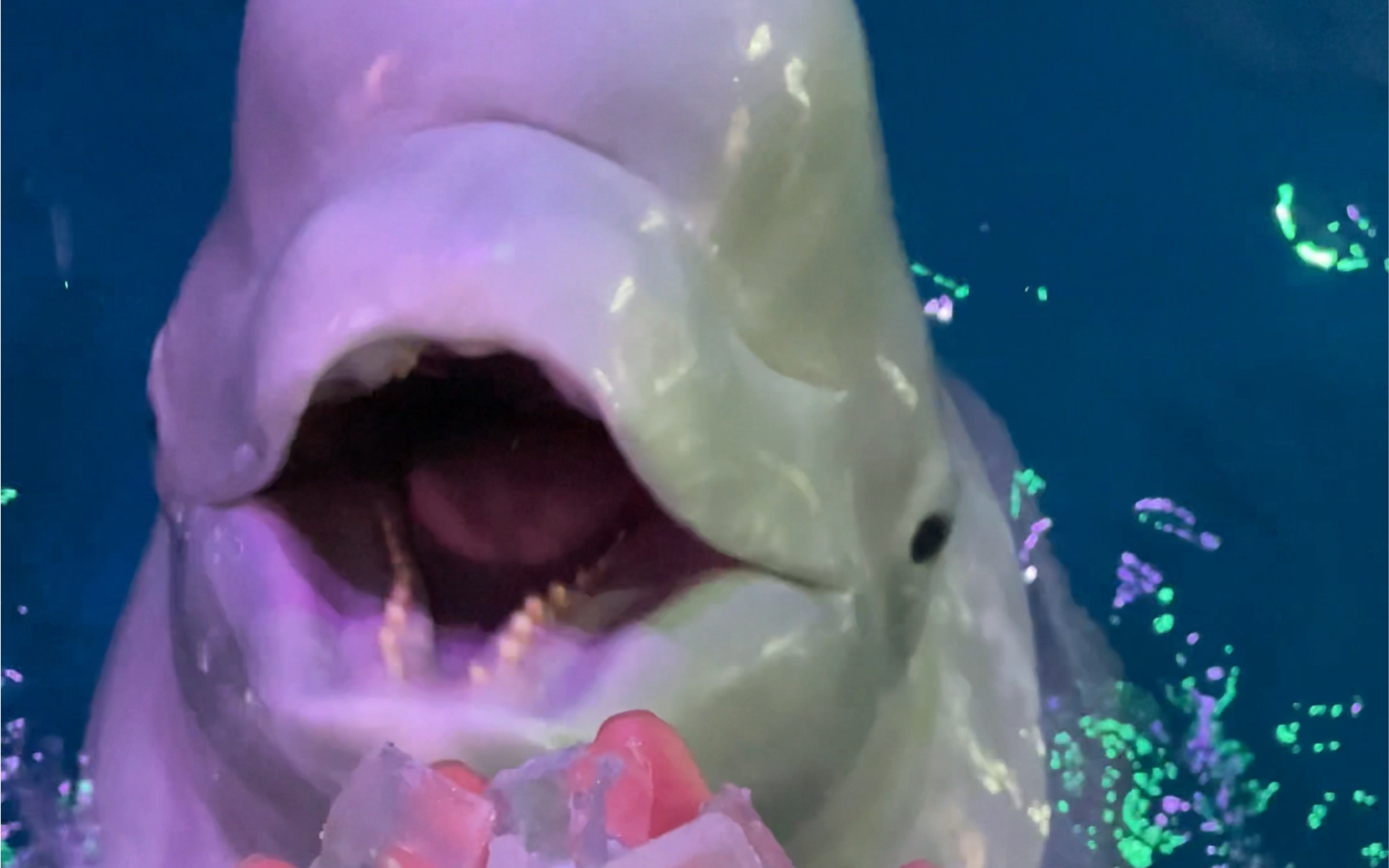 الحوت الأبيض يأكل مكعبات الثلج لتعويض المياه العذبة، وليس لتبريده.