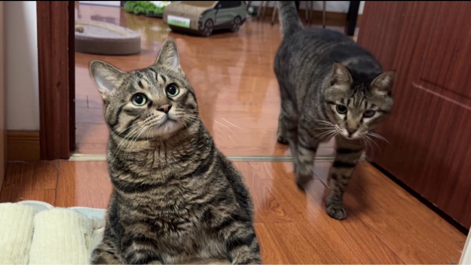قطة تحوّلت من الحلاوة إلى السمنة؛ قبل عام كانت رأسها كبيرة وجسمها صغيرًا، أما بعد عام فرأسها صغير وج