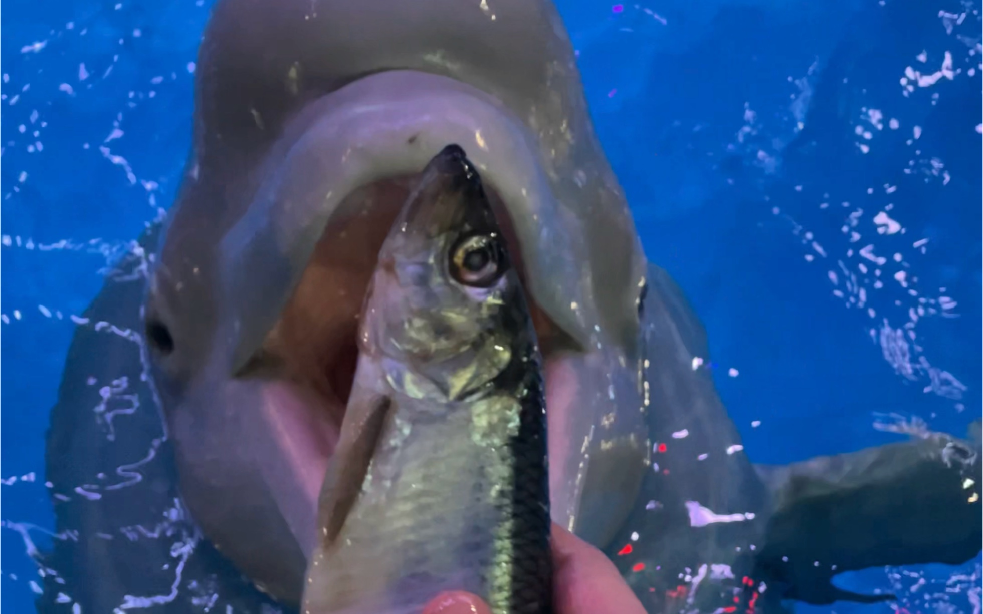 الحوت الأبيض لا يحتاج إلى المضغ عند تناول الطعام.