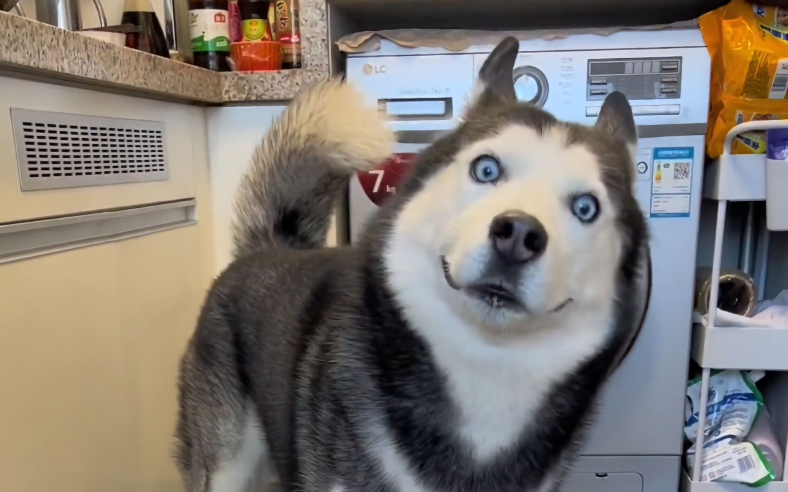 ألاسكا اللطيف للغاية، الكلب سمين بعض الشيء ويركض ويتسلق، إنه لطيف جدًا!