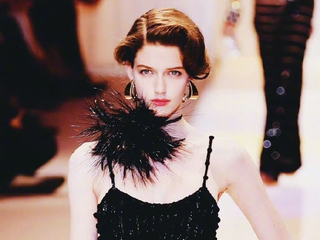 إنها لا تبدو وكأنها على منصة عرض أزياء، بل تبدو وكأنها ذاهبة إلى مأدبة.