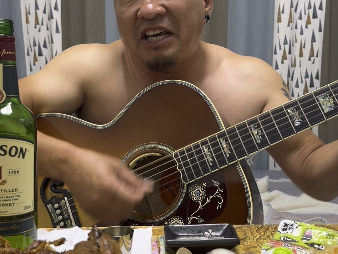 البحر الواسع، السماء، الأب والابن يغنيان معًا على الجيتار