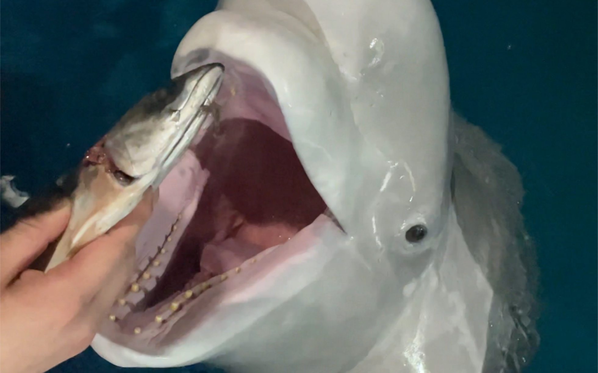 الحوت الأبيض يأكل مكعبات الثلج لتعويض المياه العذبة، وليس لتبريده.