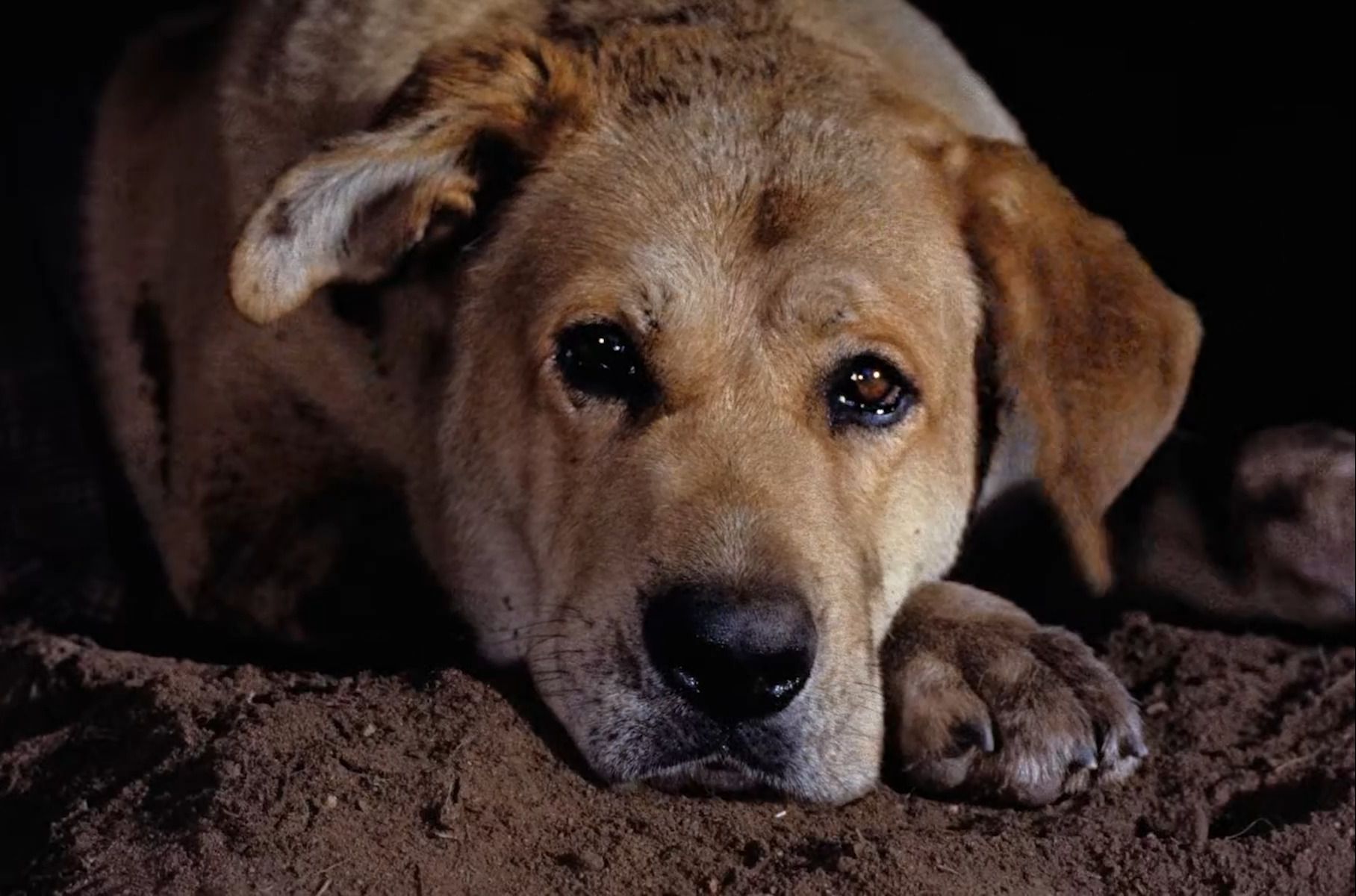 دموع في العيون! بيرن مونتن تائه في الخارج يحظى بحماية كلبين مشردين، لا يعرفان مدى نُدرة سلالته، بل ي