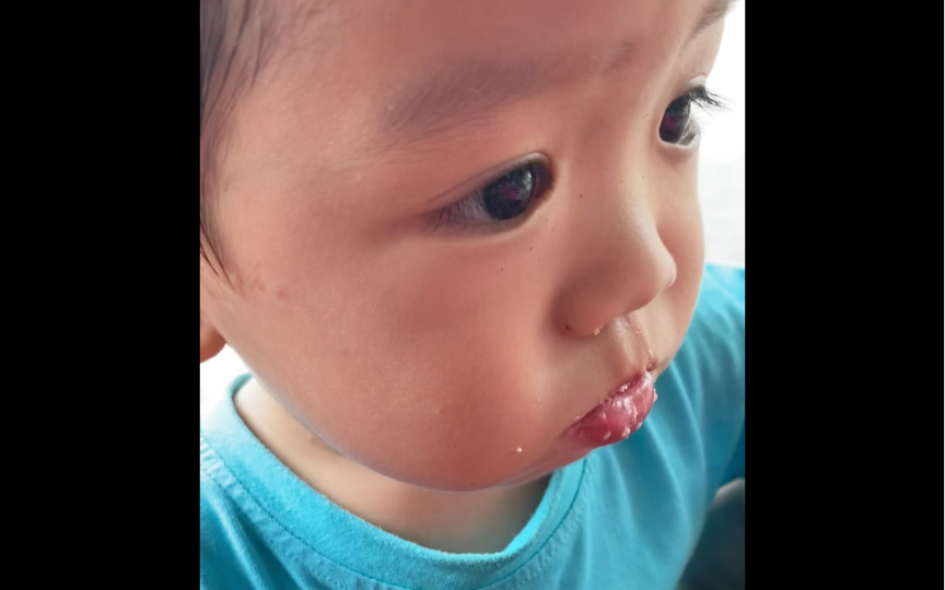 رد فعل طفل صغير لأول مرة يأكل الفراولة...