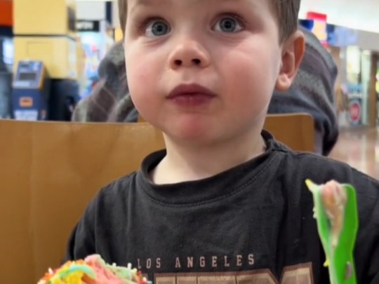 This human cub is eating ice cream for the first time, and his expression makes me laugh like crazy!