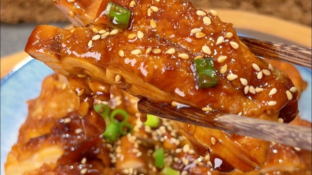 أجنحة الدجاج بالكولا مع الأرز والتووفو المطهو بصلصة الحلوة والمالحة لذيذة جدًا!