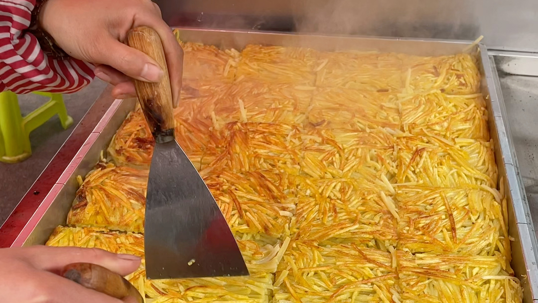 بازار شاندونغ الصباحيّ "ستاند الخمر الصباحي"، عجوز يبلغ من العمر 69 عامًا يصنع فطائر اللحم المشويّة