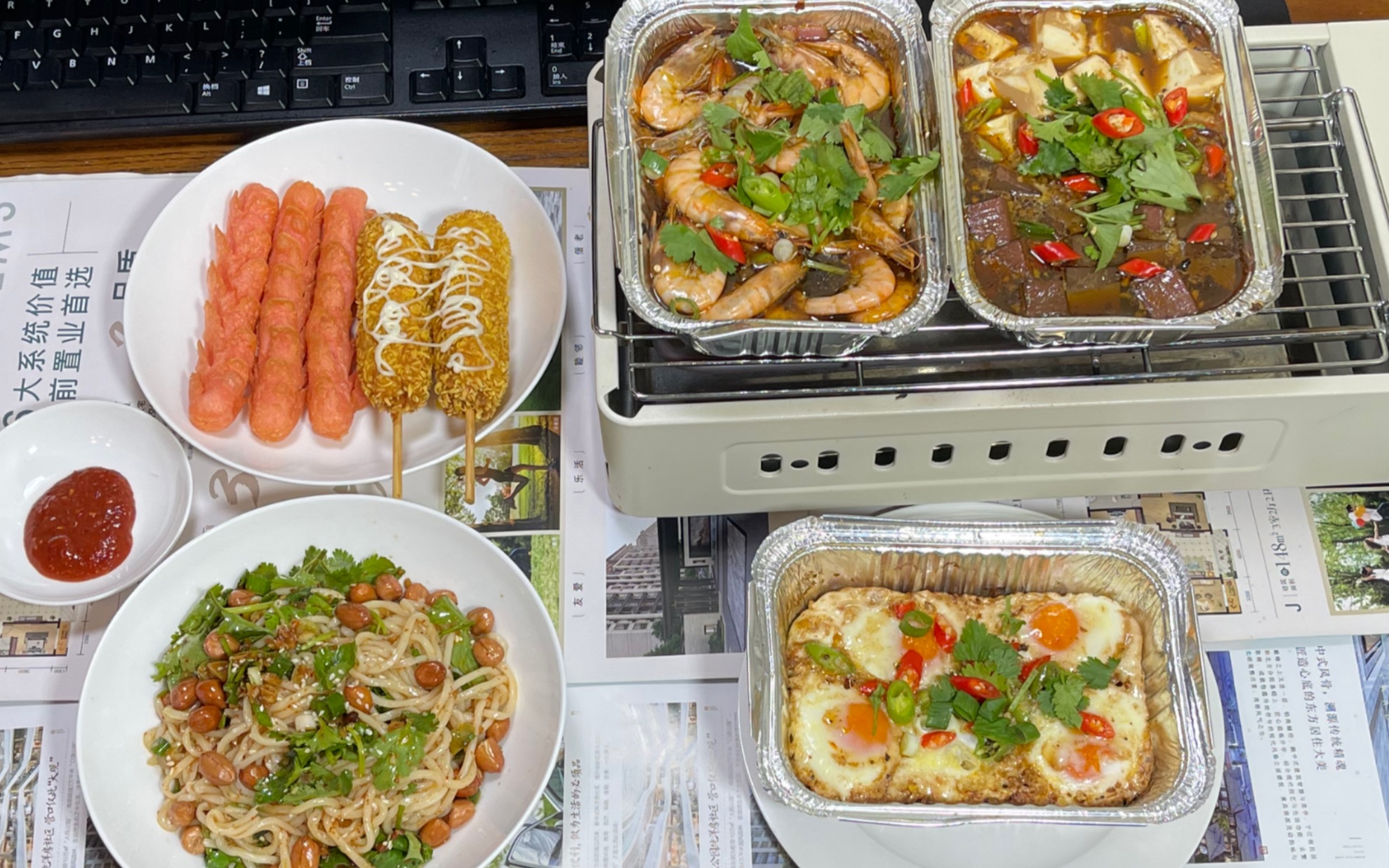 ماليتانغ، أجنحة دجاج مقلية، كيك الفراولة
