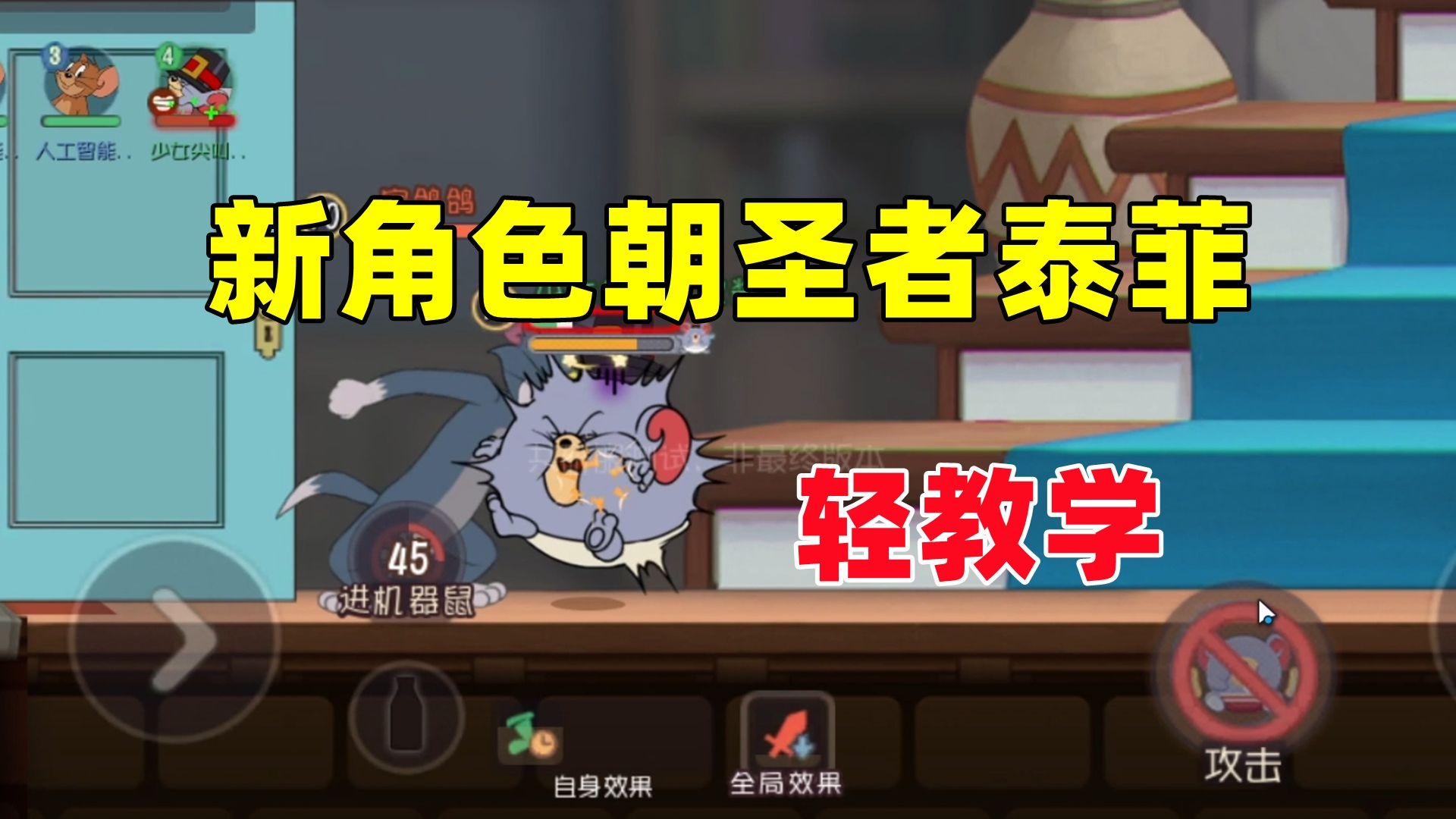 لعبة الموبايل بين القط والفأر: مواجهة حية لشخصية جديدة هي باوم على سلم التصنيف، تعليم بسيط!