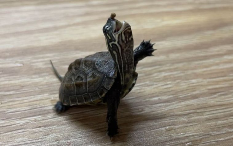 السلحفاة تأكل بطيخ على شكل إعجاب
