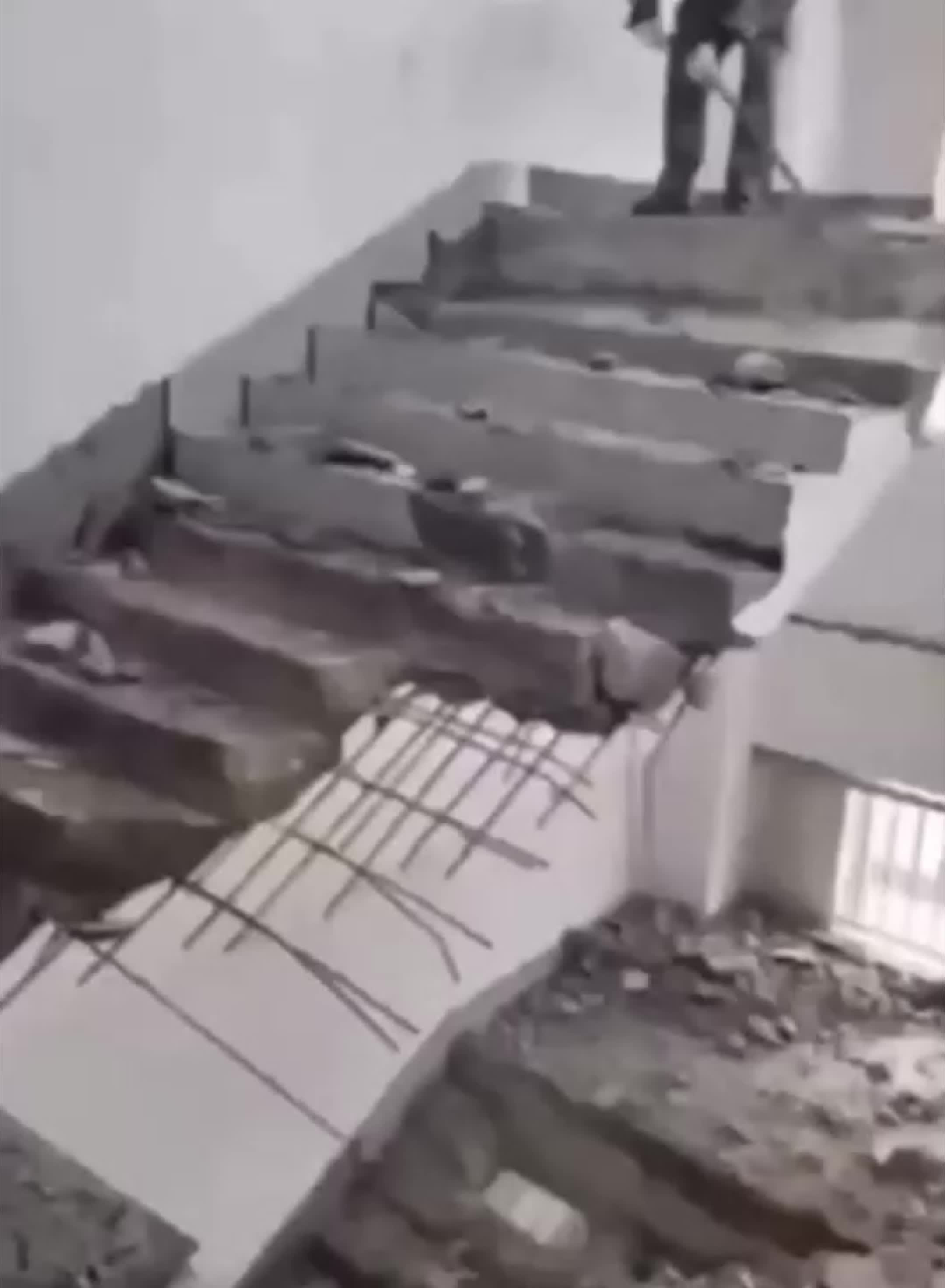 يبدو أن عامل الأسمنت هذا يحب تناول التوفو جدًا، فكل درجة سلم يصنعها تشبه مكعب التوفو تمامًا!