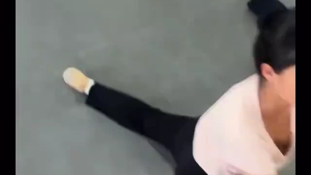 الفتاة الصغيرة اللطيفة تتدرب في المنزل