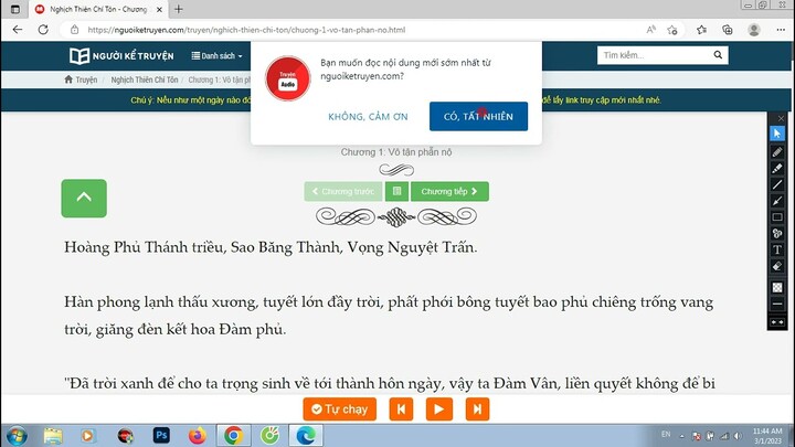 Nghe mọi trên nguoiketruyen.com bằng trình duyệt Microsoft Edge