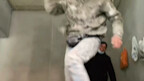 A construction worker's video of himself jumping and shooting has gone viral. He spends a few minute