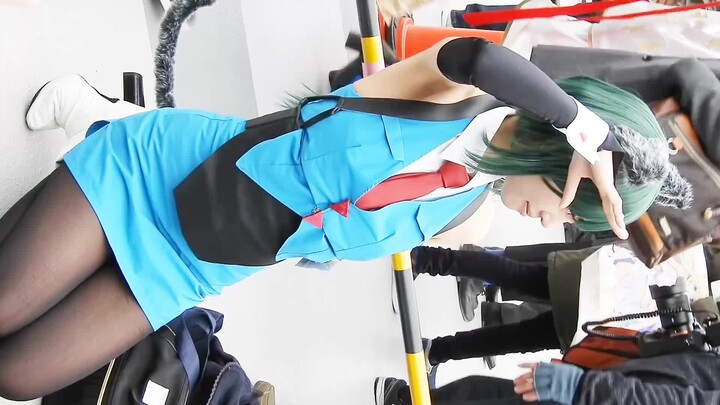 [1080p Welfare Quality] The cute girl in net stockings at the anime coplay show!