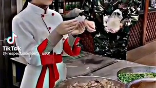 Chinese woman and her son work at restaurant in China. Her son help her, he hard work.