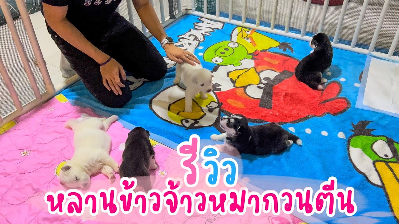 Golden Retriever Plays with Her Puppies