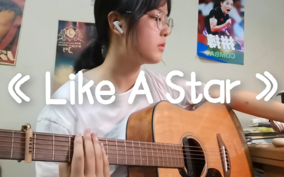 【like a star guitar fingerstyle】First video post. Junior high school girls, self-study for a week