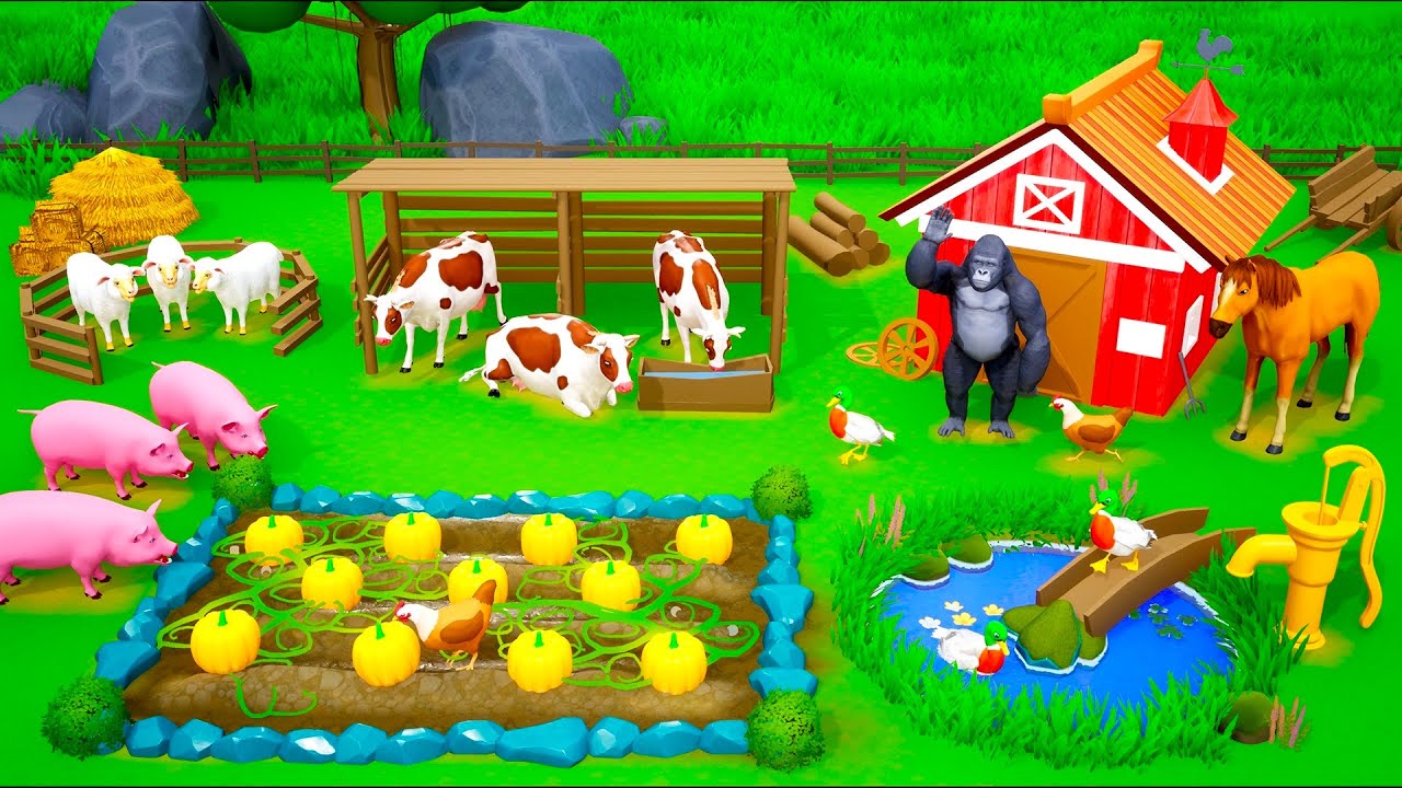Gorilla's Giant Animals Farm Diorama | COW, SHEEP, HEN, PIG, GOAT | Funny Animals Cartoons 3D 2022