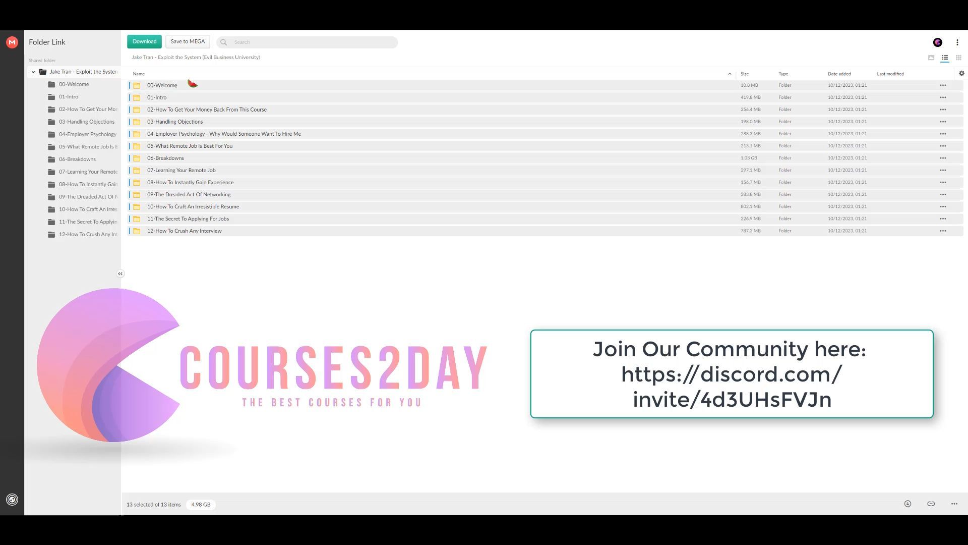 If you don't see this link working at Courses2day.org it may have been removed, please contact me via my email or discord for support and direct purchase of this course.