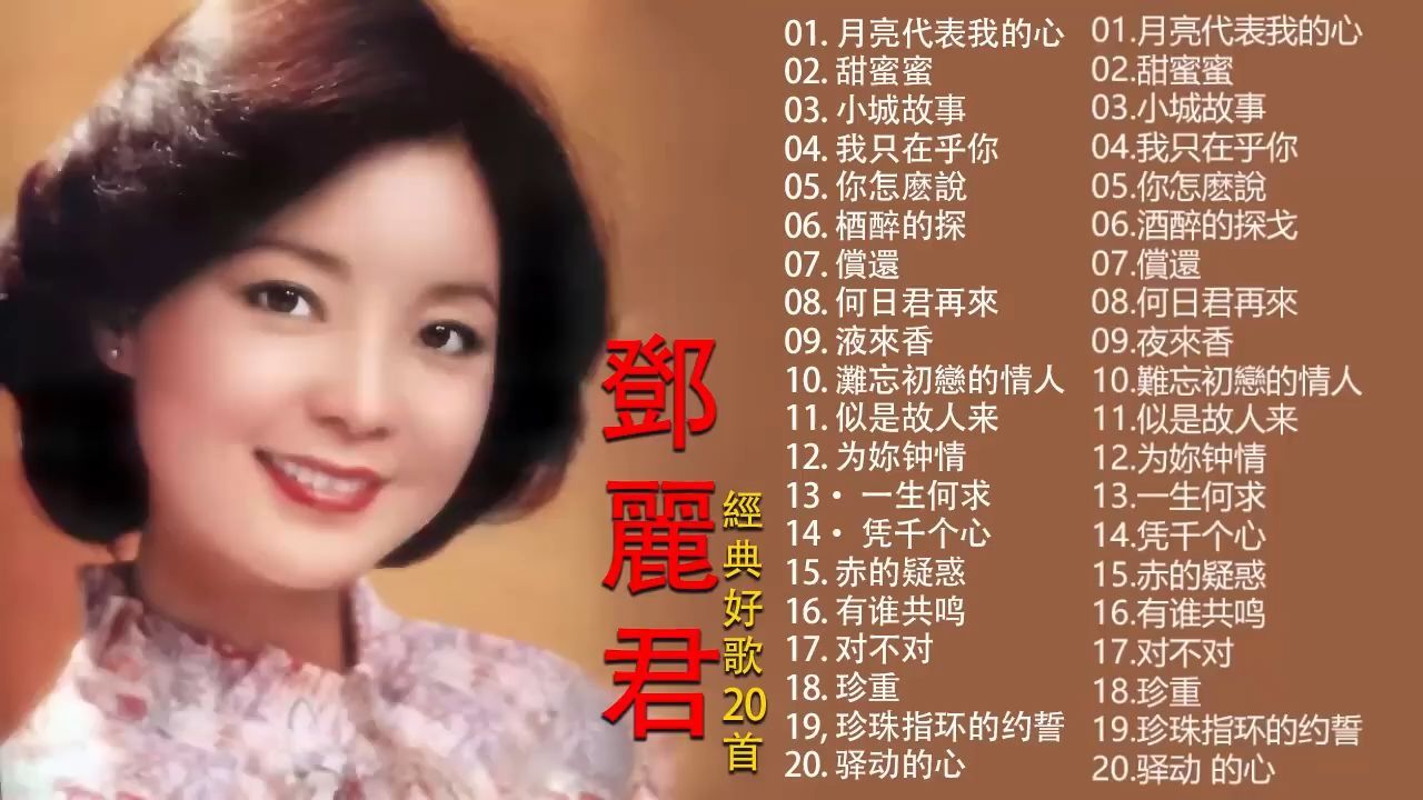 鄧麗君 Teresa Teng 永恒鄧麗君柔情經典 【月亮代表我的心甜蜜蜜小城故事我只在乎你你怎麽說酒醉的探戈償還何日君再來夜來香難忘初戀的情人 】
