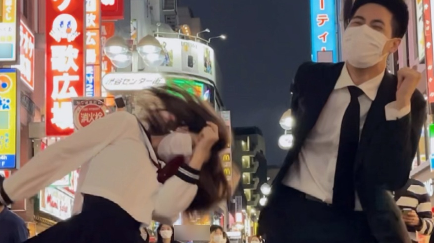 Twisting lightly with a Japanese guy on the streets of Roppongi