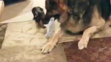 In order to protect the lamb from being bullied by the dog, a pair of stainless steel horns were mad