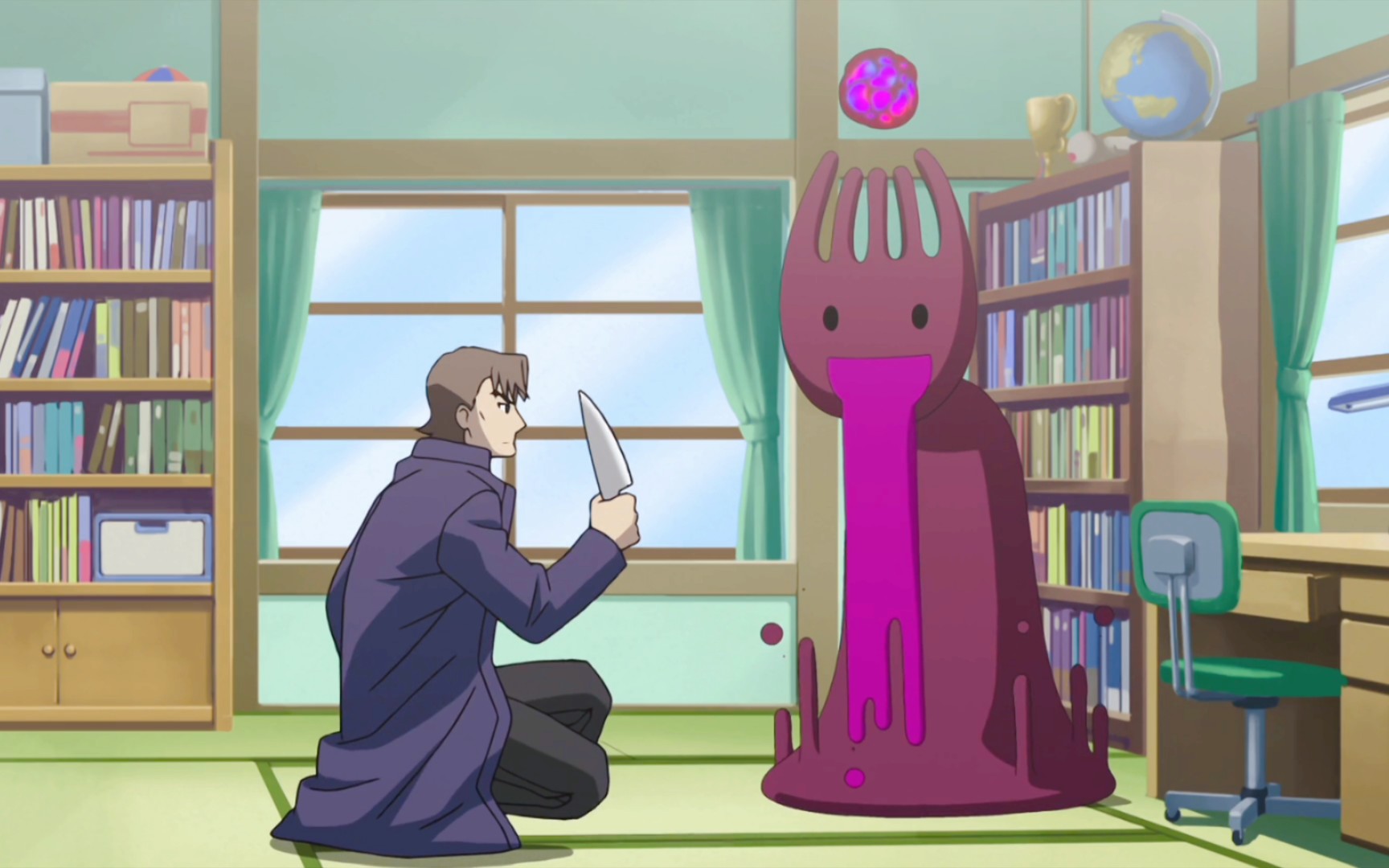 Kazuma put on a thief suit but was instantly discovered by Darkness and was almost crushed by her!