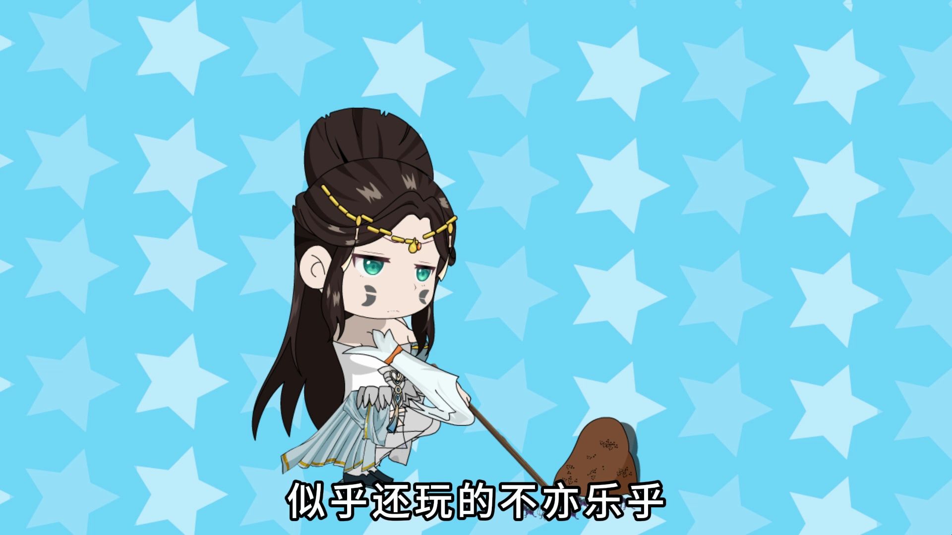 Episode 55: Jade Rabbit lies on the doorstep and looks at the moon. Then a full moon rises above its