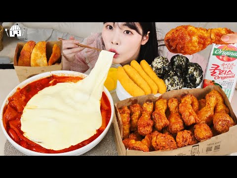 ASMR MUKBANG| 편의점 직접 만든 불닭 떡볶이 양념치킨 김밥 디저트 먹방 & 레시피 FRIED CHICKEN AND Tteokbokki EATING