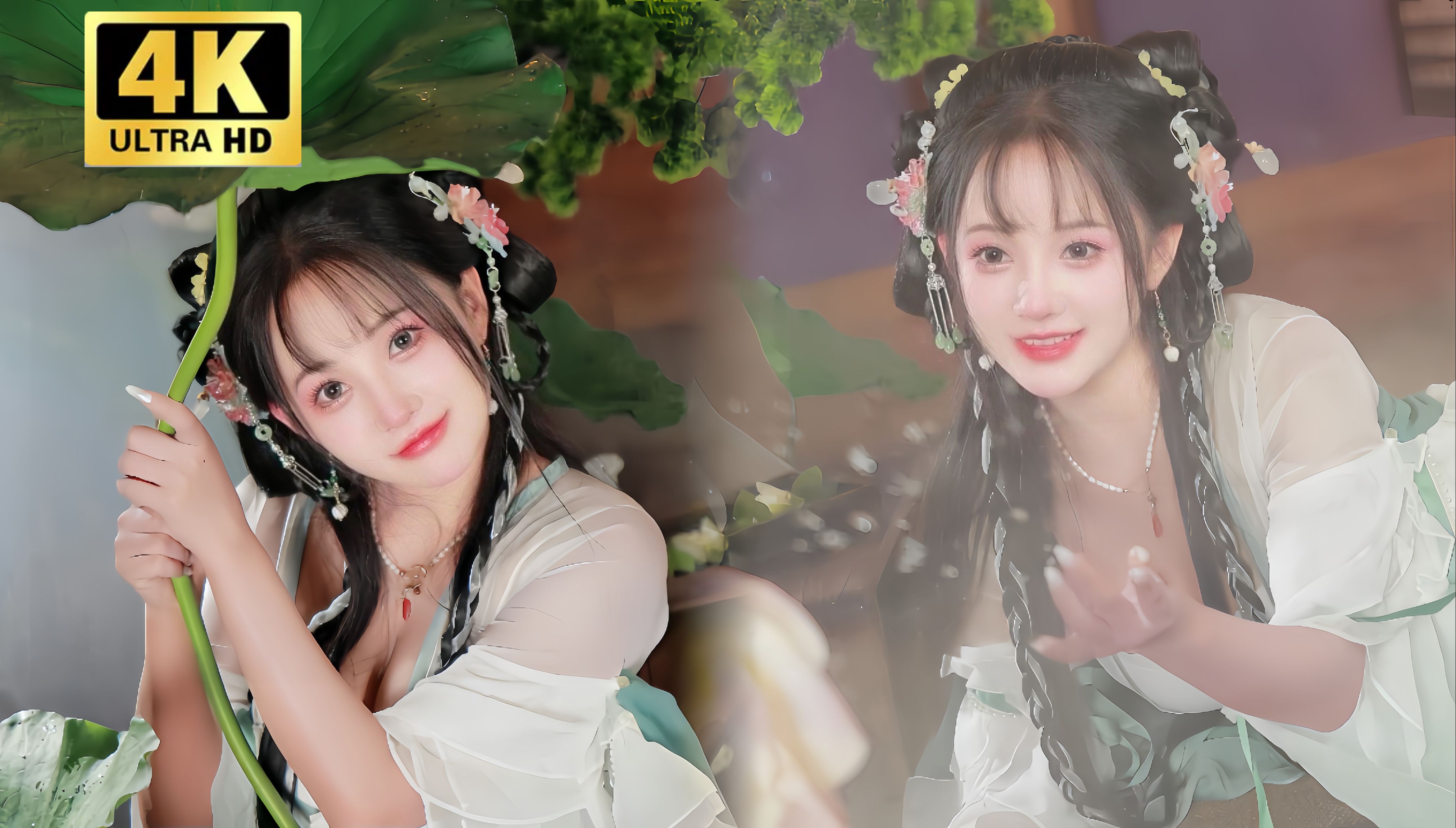 The lotus is not as beautiful as the beauty's makeup, the wind blows through the water palace and th